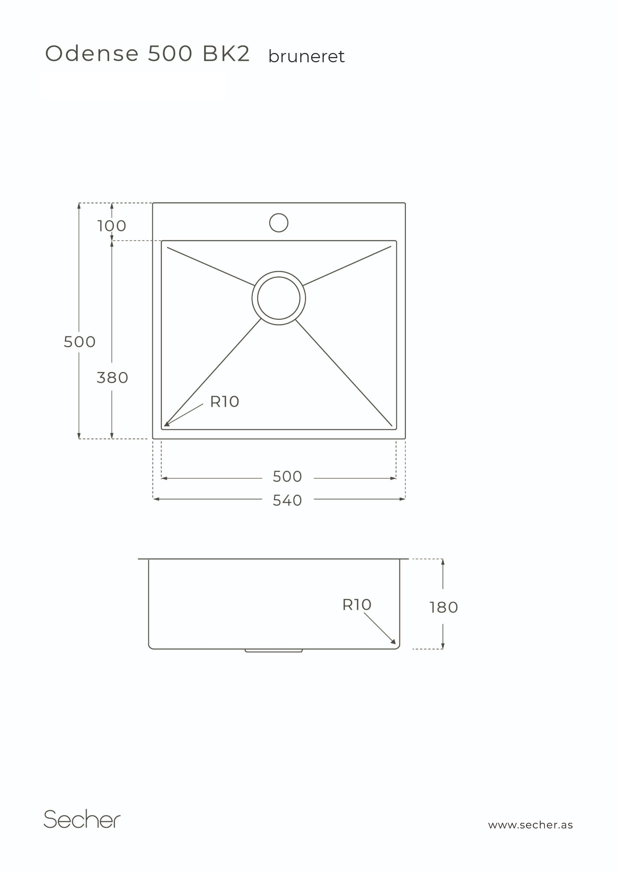 Køkkenvask i bruneret massiv messing. Denne vask er velegnet til underlimning. Strainer i massiv bruneret messing (SEC022 B) medfølger.